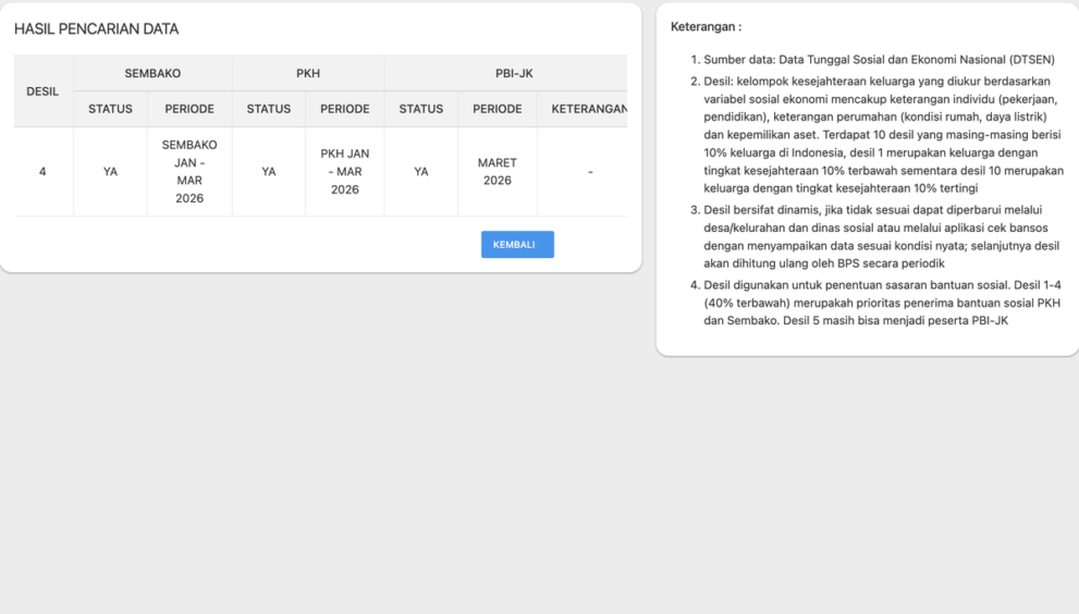 Masyarakat diharapkan melakukan pengecekan secara berkala guna memastikan validitas data dan kelancaran proses penerimaan bantuan pada triwulan kedua tahun 2026 ini.
